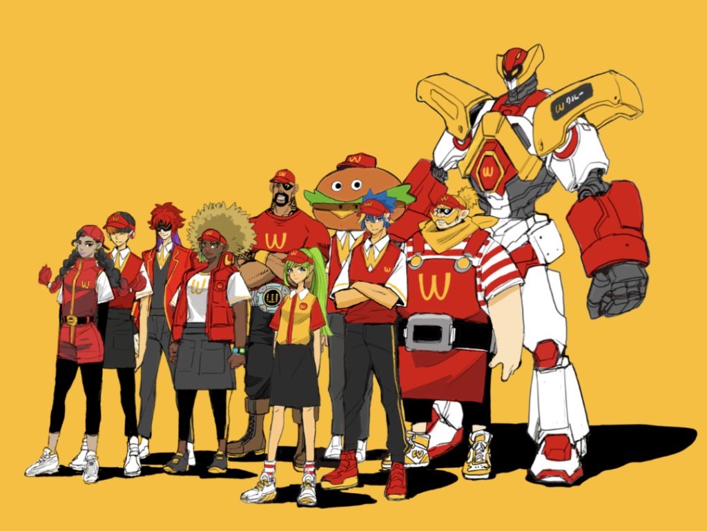 Seni kawakakkoii (imut dan keren) dari ilustrator manga Acky Bright telah menjadi sosok yang dikenal di aula konvensi anime dan iklan (karyanya yang paling terkenal mungkin adalah promosi.
