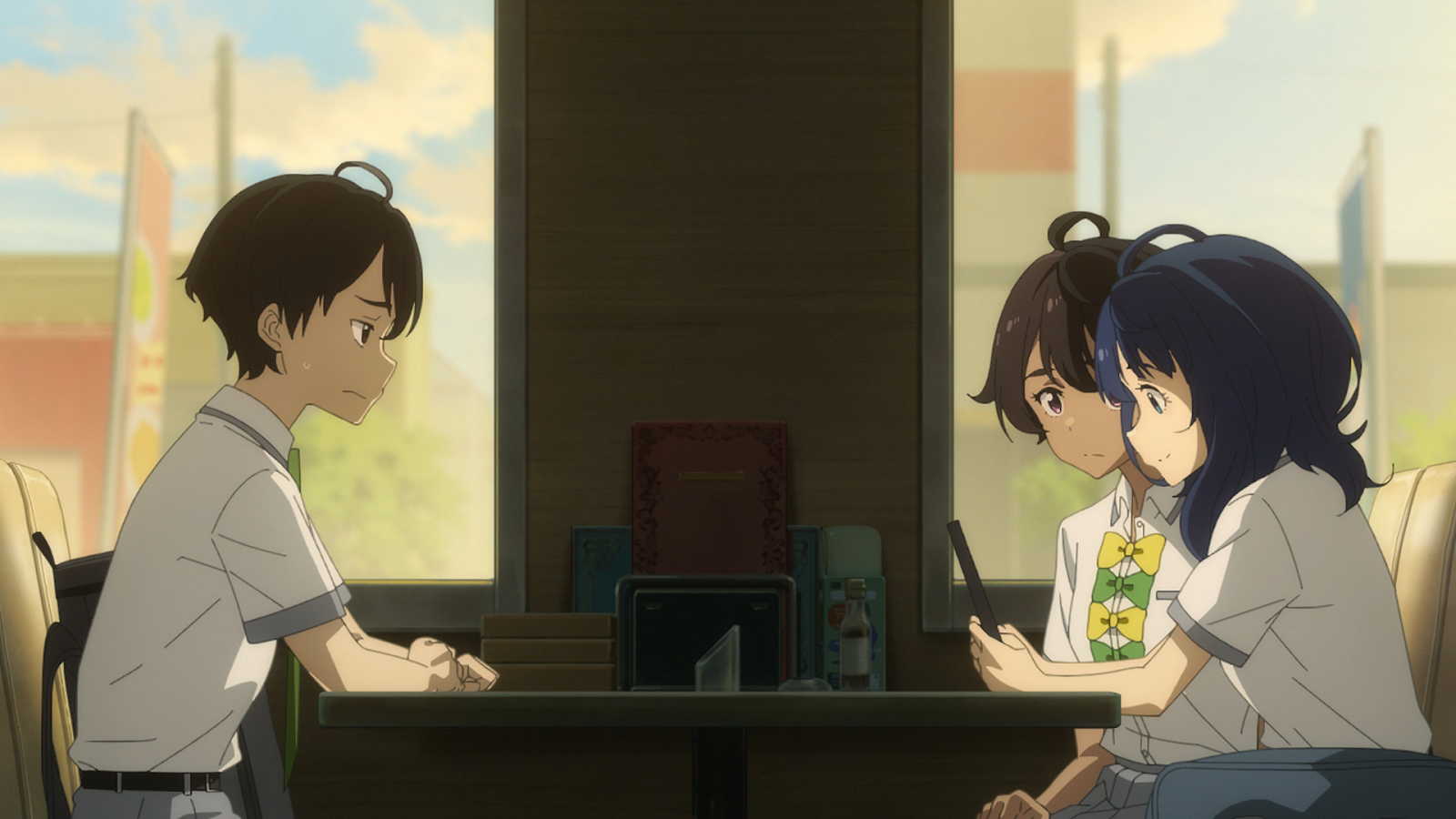 Saya akui genre ini agak di luar jangkauan saya. Makeine cukup mantap dalam genre drama komedi sekolah menengah. Sebagian besar adegan berayun antara ketegangan romantis yang akan-mereka-tidak-akan-mereka lakukan, kejenakaan konyol, interaksi kehidupan sehari-hari, dan drama interpersonal. Plotnya ringan, tetapi pengembangan karakter dan koneksinya berat—dengan banyak wajah yang bereaksi, pengakuan yang menyentuh hati, dan dialog yang mengasyikkan. Meskipun di beberapa bagian ceritanya bisa diterima—saya dulunya adalah anak muda yang canggung, berjuang untuk mendefinisikan diri sendiri dan memahami orang-orang di sekitar saya—penyampaian yang berlebihan bisa jadi mengagetkan. Ada kalanya luapan emosi ini menyentuh kebenaran emosional dari suatu pengalaman, tetapi lebih sering saya merasa hal itu membuat saya keluar dari suatu adegan atau terlalu dibesar-besarkan hingga berubah menjadi emosi yang asing sama sekali.